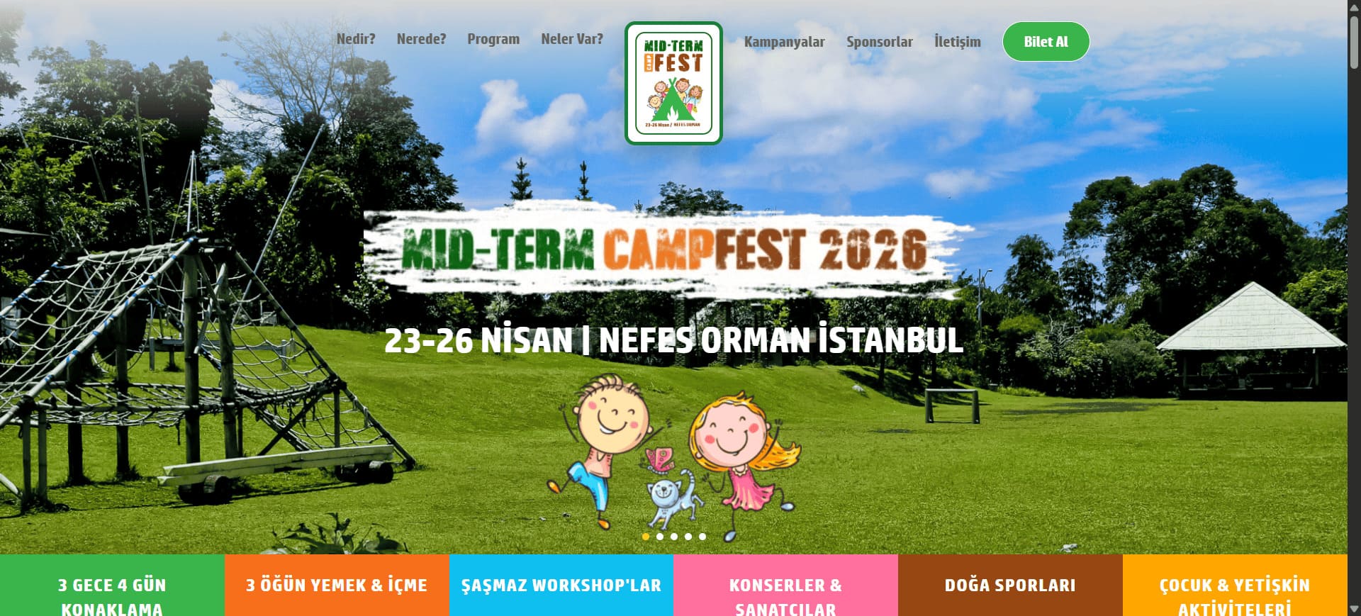 Midfest is a festival and event platform developed for Turkey’s first and largest family-focused nature camping festival, featuring event information, program details, and a user-centered experience.